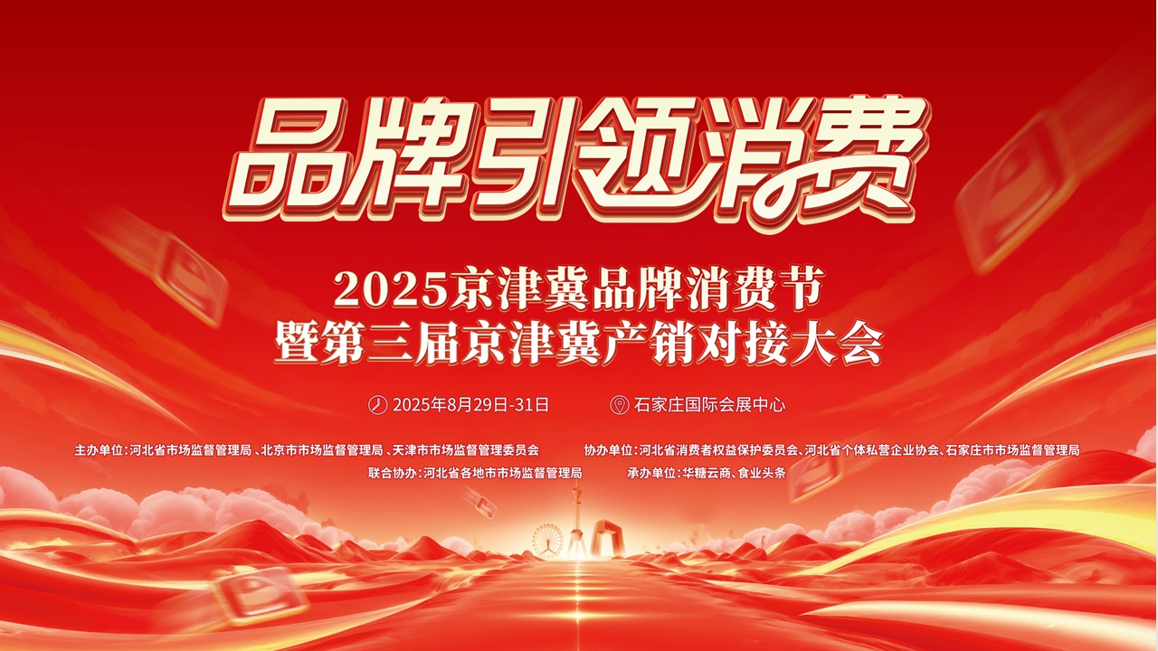 聚勢同行·共啟新程。8月28-31日,在石家莊國際會(huì)展中心舉行2025京津冀品牌消費(fèi)節(jié)暨第三屆京津冀產(chǎn)銷對(duì)接大會(huì)。本次活動(dòng)由河北省市場監(jiān)督管理局、北京市市場監(jiān)督管理局、天津市市場監(jiān)督管理委員會(huì)主辦,華糖云商、食業(yè)頭條承辦。