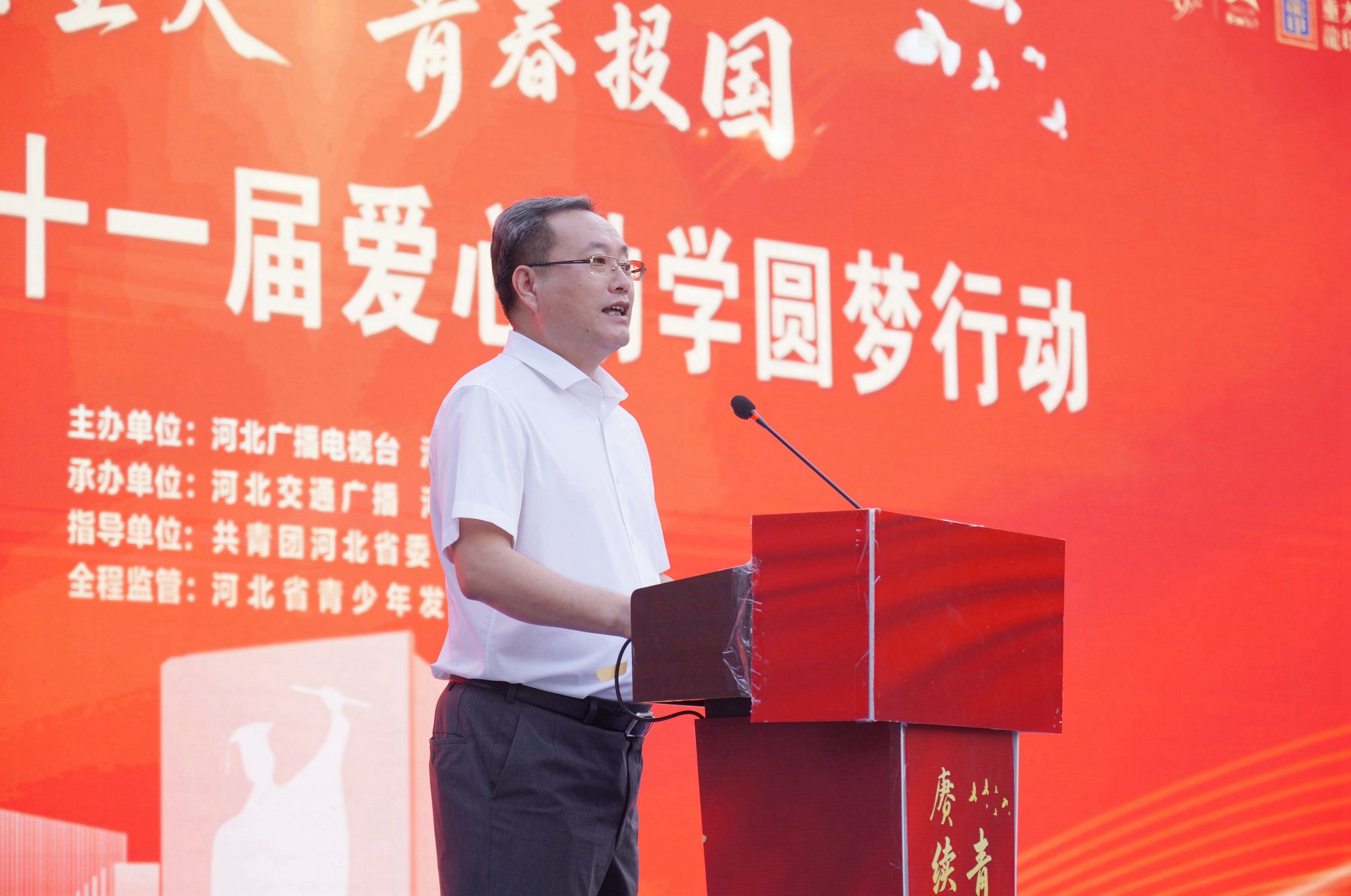 河北廣播電視臺副總編輯邊宇峰致辭,邊宇峰講到:“作為主流媒體、責任擔當,河北廣播電視臺始終與時代同行,與人民同向。值此抗戰(zhàn)勝利八十周年,我們賦予本屆活動深沉的主題——‘賡續(xù)星火青春報國’這不僅是一次助學行動,更旨在為學子注入時代精神與國際視野,將個人理想熔鑄于民族復興的壯闊征程。讓我們攜手并肩,讓助學‘星火’代代相傳,照亮青春夢想,共繪時代華章!”